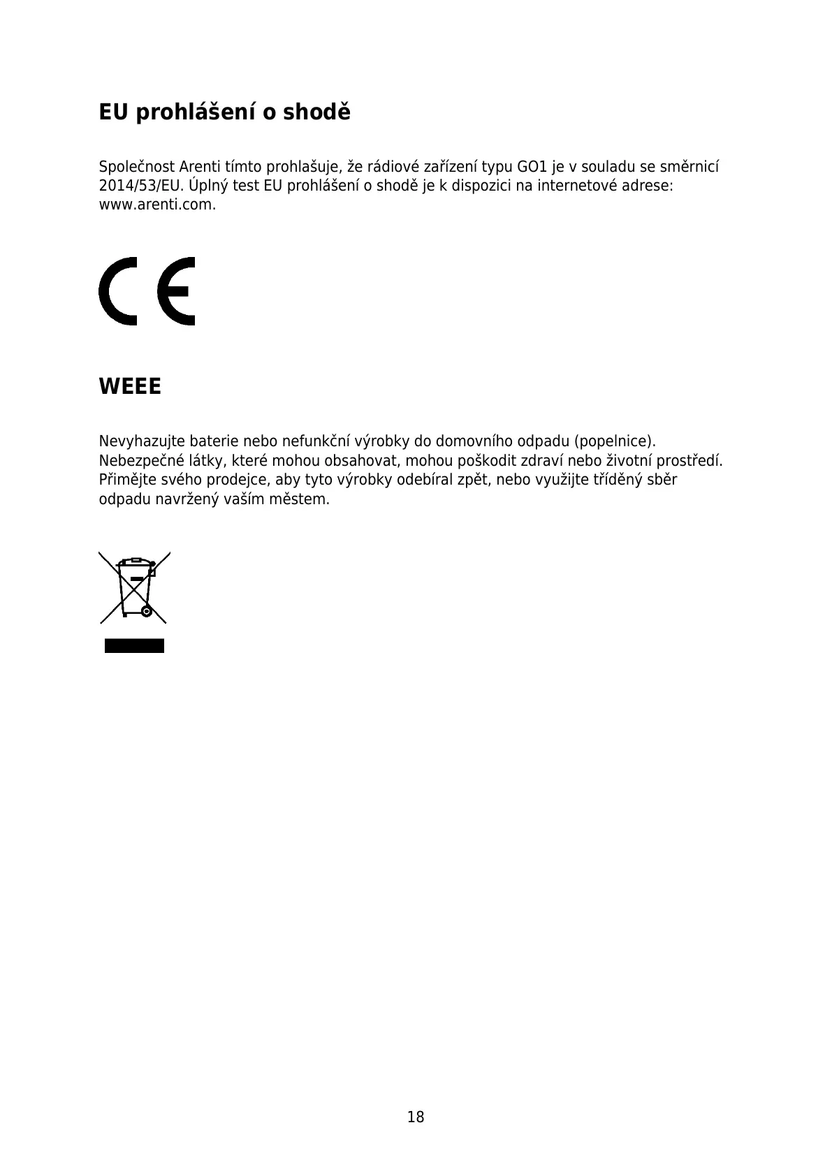 Společnost Arenti tímto prohlašuje, že rádiové zařízení typu GO1 je v souladu se směrnicí