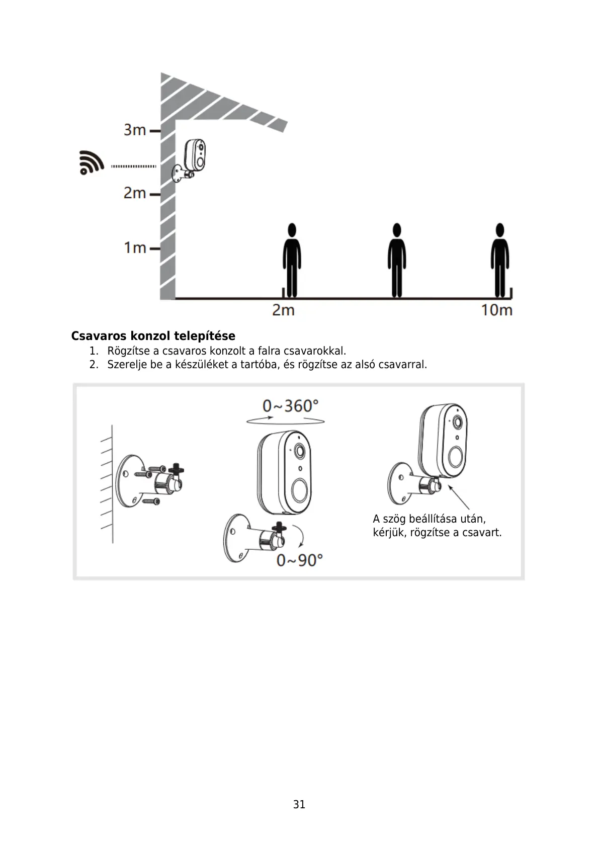 1. Rögzítse a csavaros konzolt a falra csavarokkal.