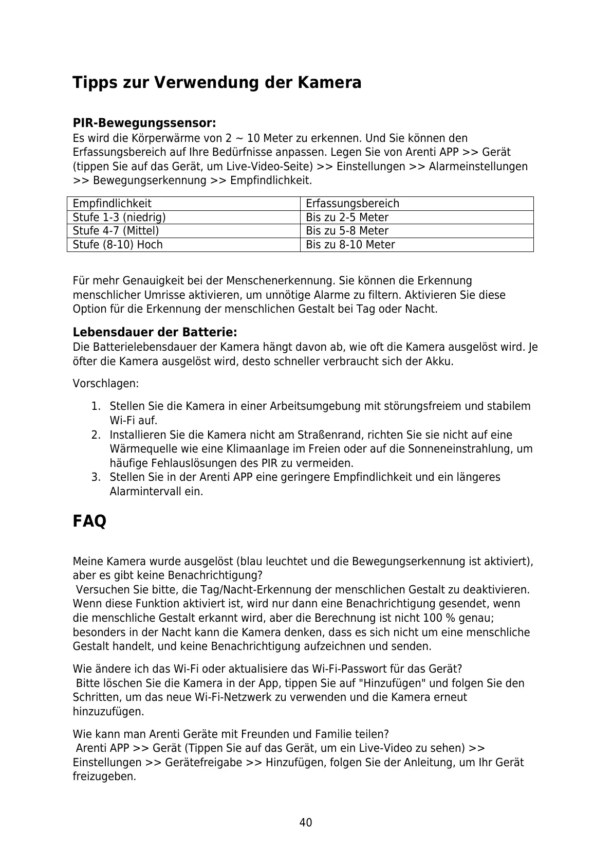 Erfassungsbereich auf Ihre Bedürfnisse anpassen. Legen Sie von Arenti APP >> Gerät