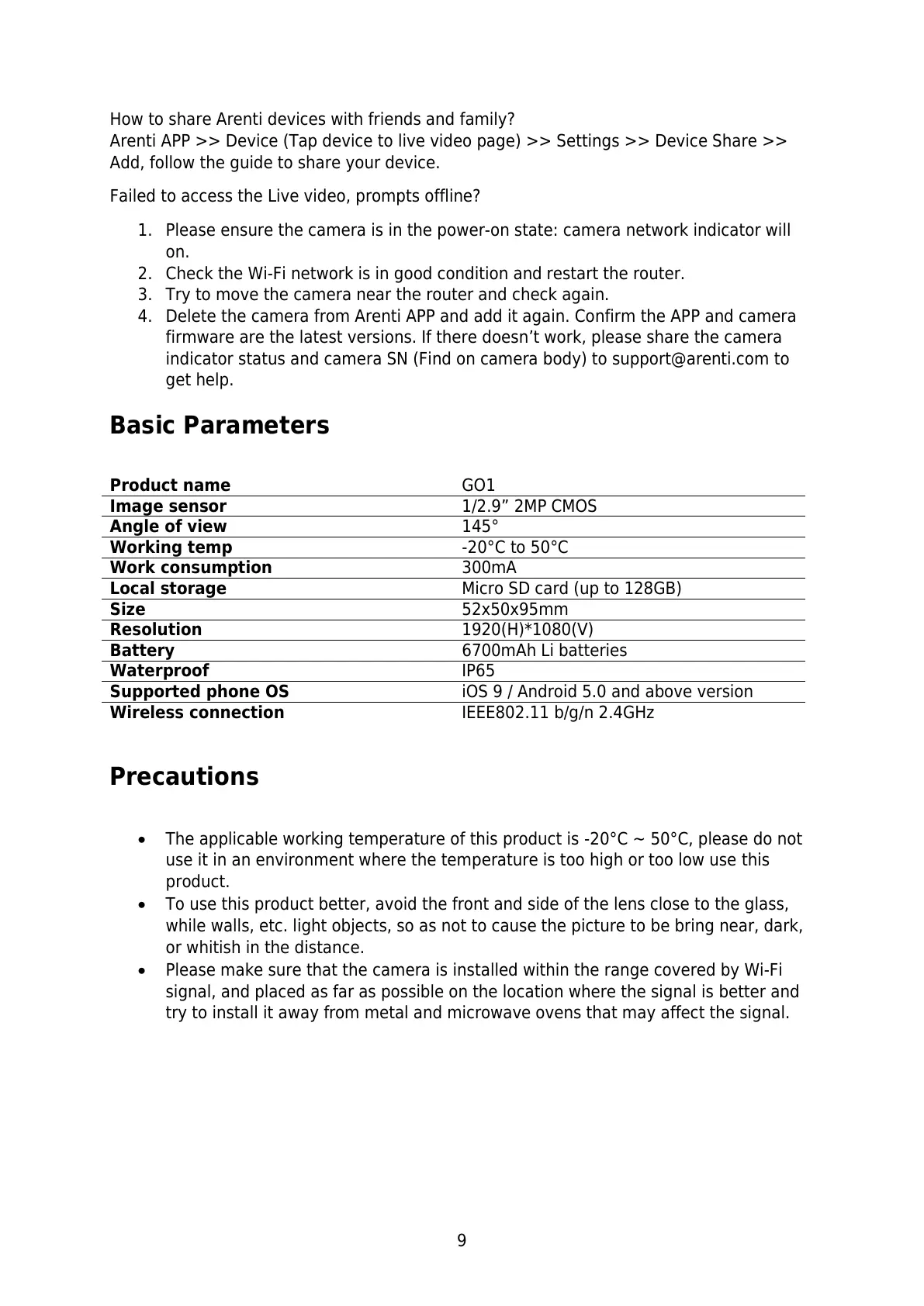 indicator status and camera SN (Find on camera body) to support@arenti.com to