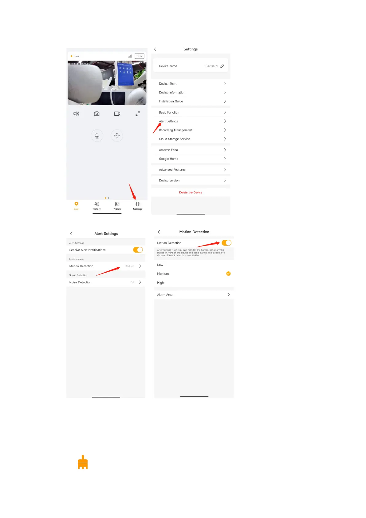 Go to camera live video page- Settings-Alert Settings-Motion detection-Alarm Area
