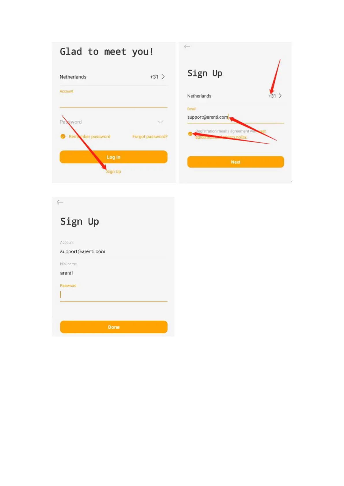2. Set the Nickname and Password, tap ‘Done’.