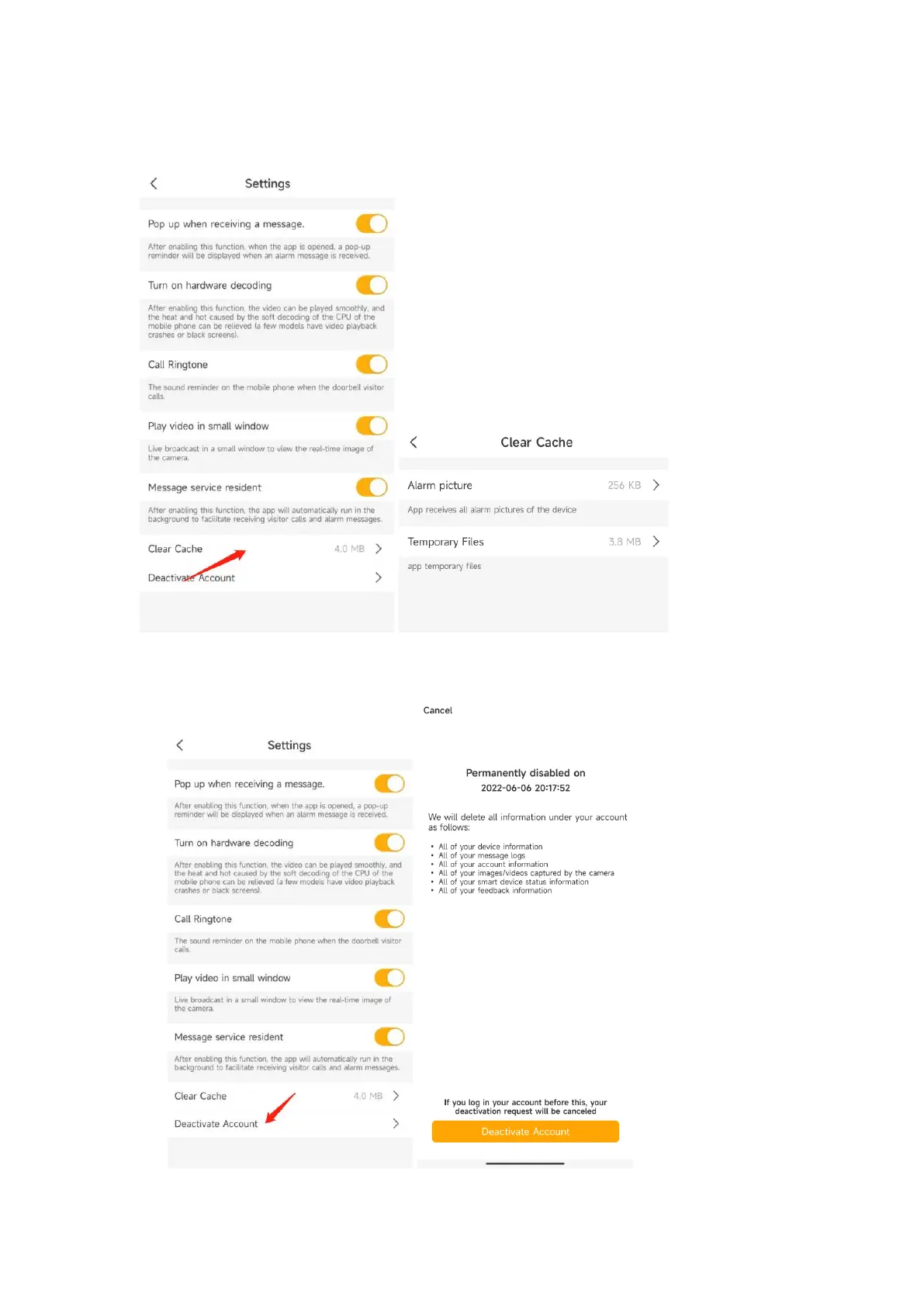 Arenti P2 - Clearing App Cache; Deactivating Your Account
