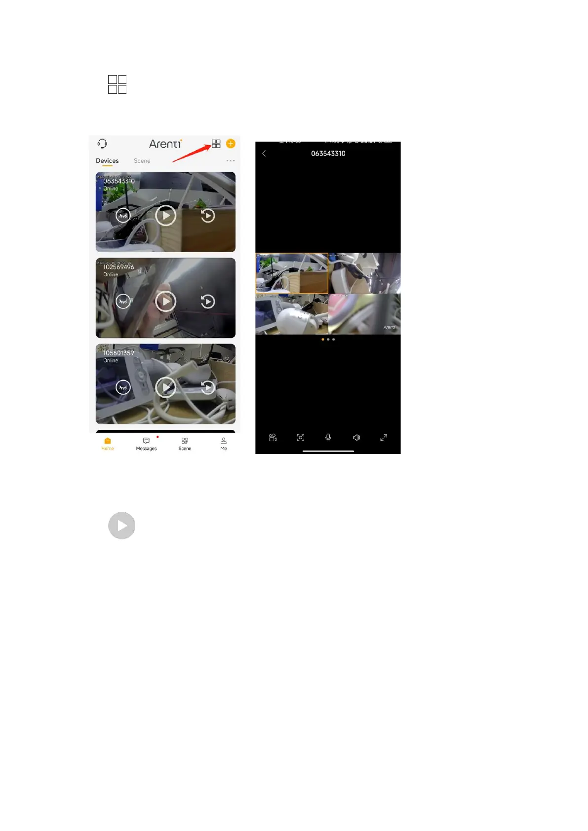 Tap icon , the first 4 cameras will show in one screen. You can slide the screen to