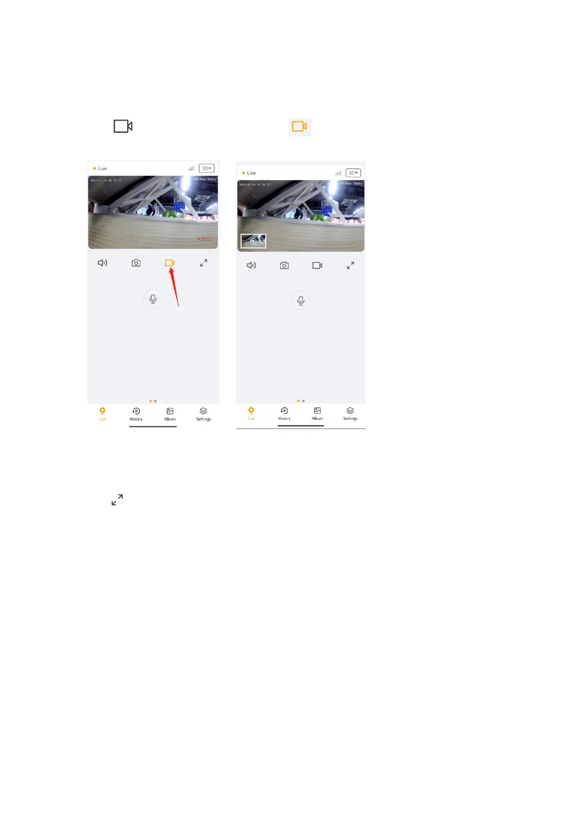 Tap icon to start record the video, tap to stop the record, the record will save