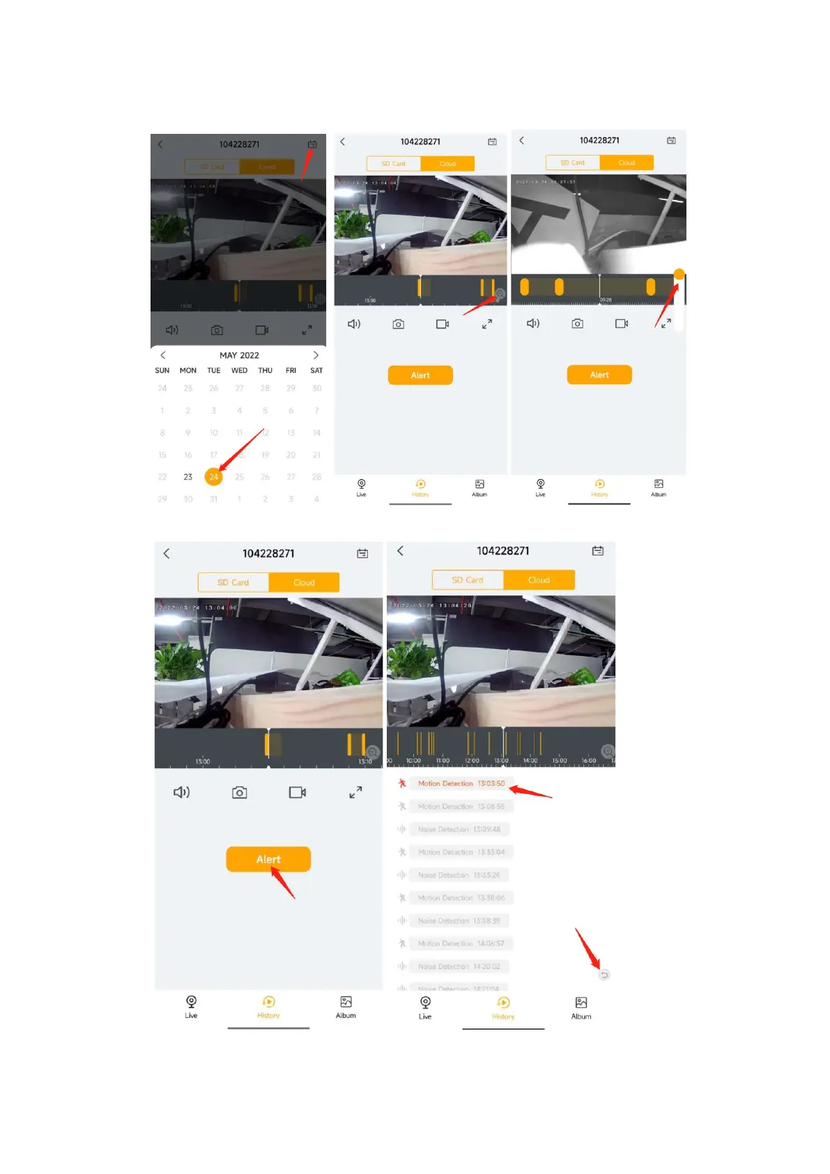 3. Tap ‘Alarm’ to search and play alarm recordings.