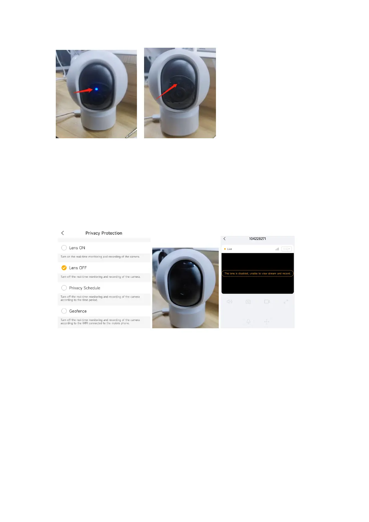 The Lens will move up and be covered automatically, the camera will stop Live video and