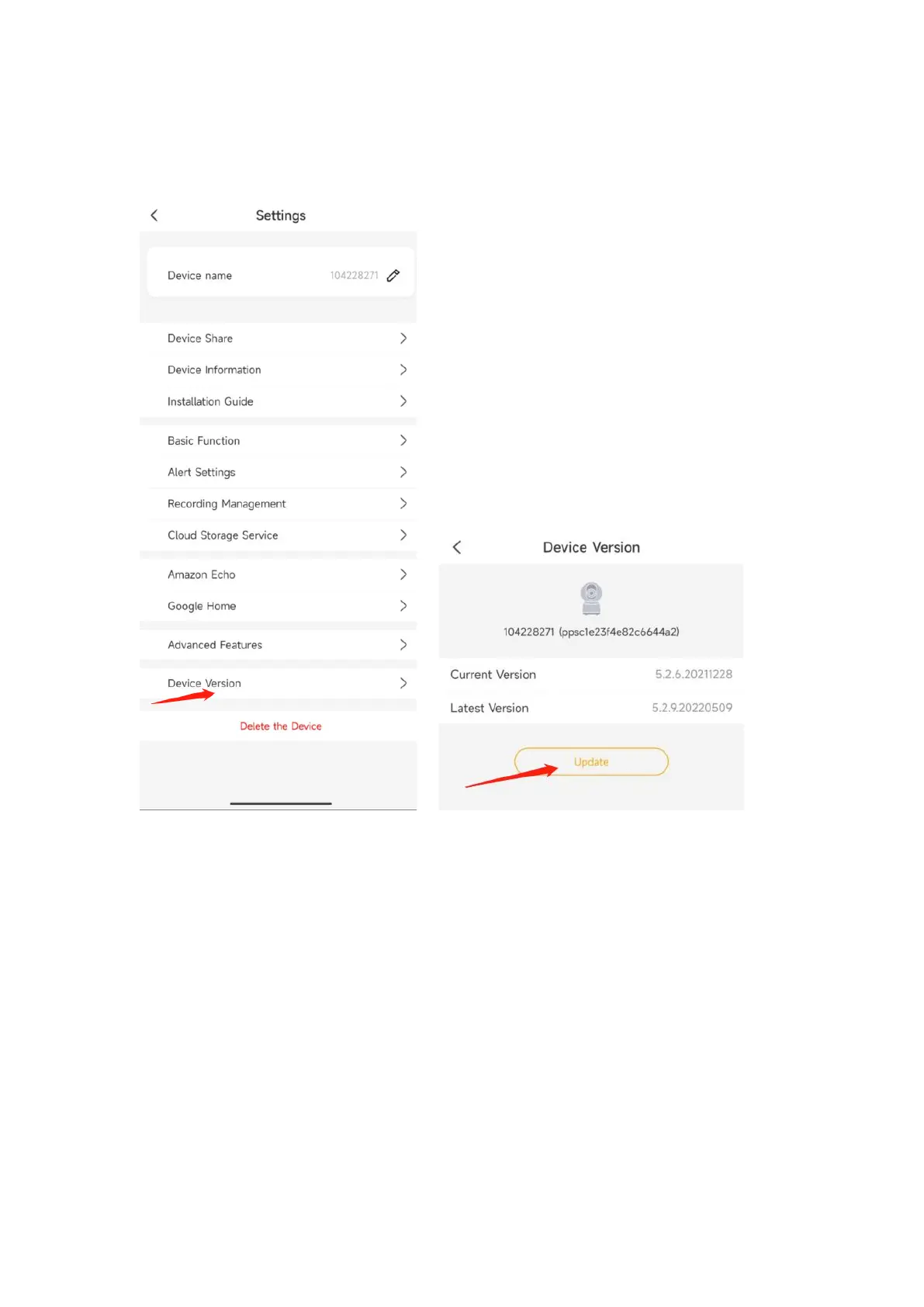 Arenti P2T - Device Version; Delete the Device