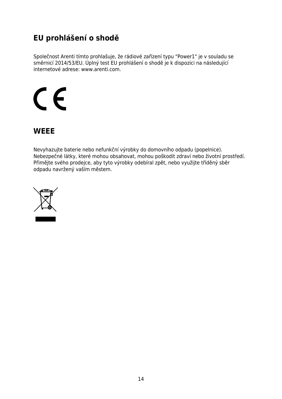 Společnost Arenti tímto prohlašuje, že rádiové zařízení typu "Power1" je v souladu se
