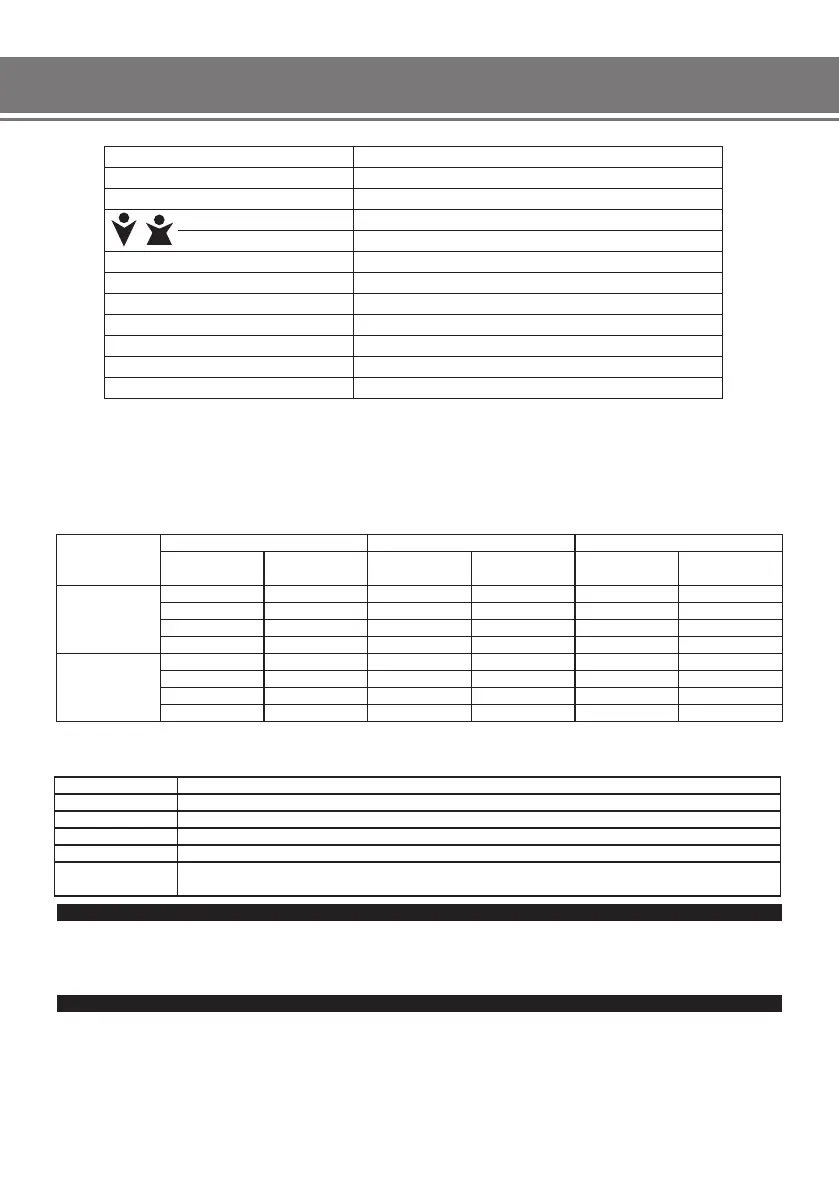 Using the below table you can check th indications shown on the display.