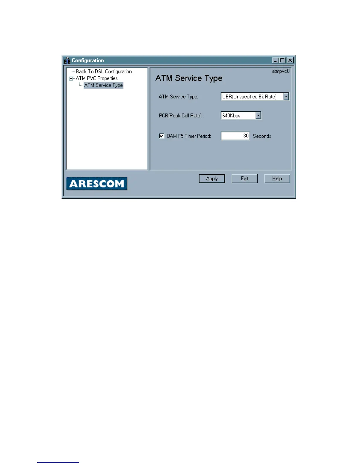This panel allows you to select the ATM Service Type for the ATM interface.