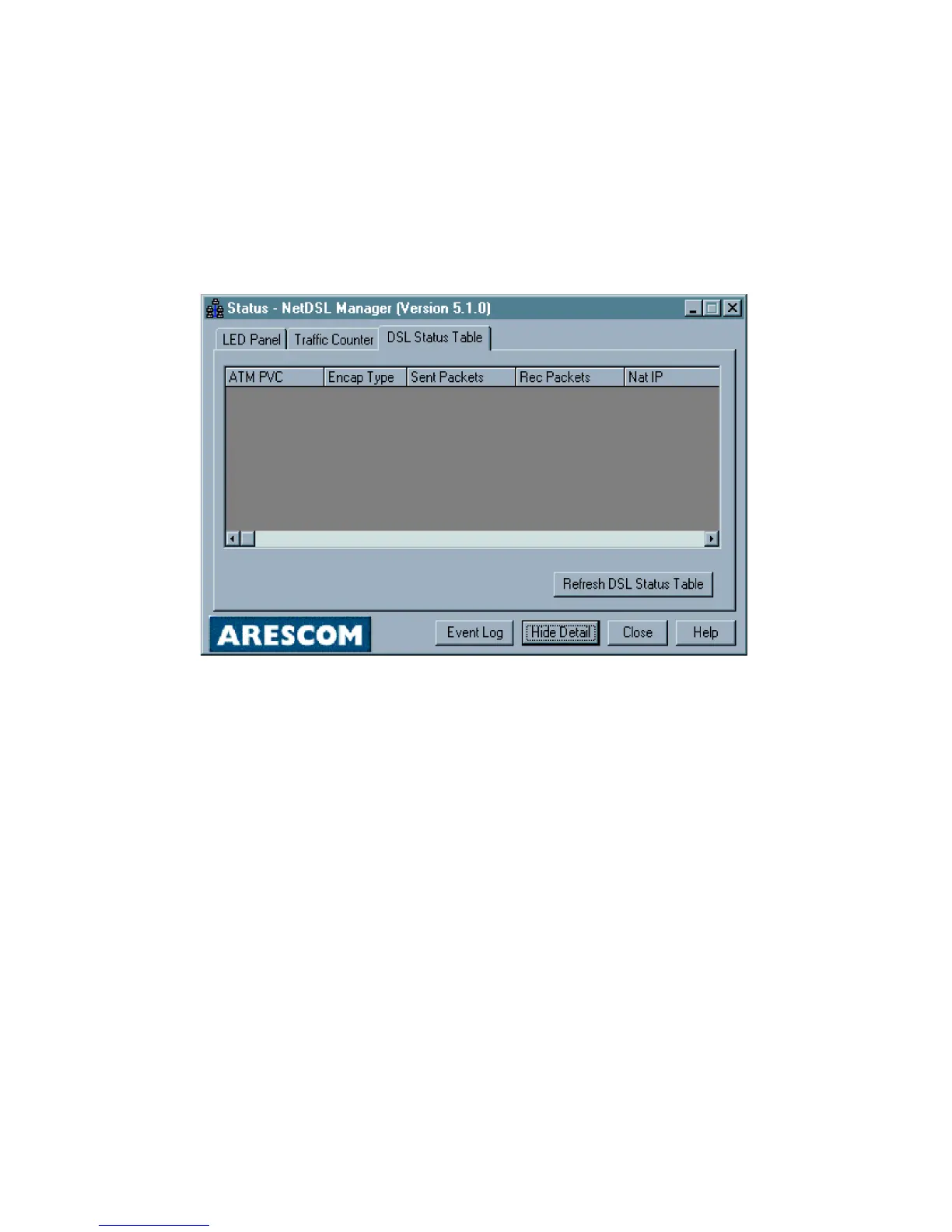 button, and then select the DSL Status Table tab.