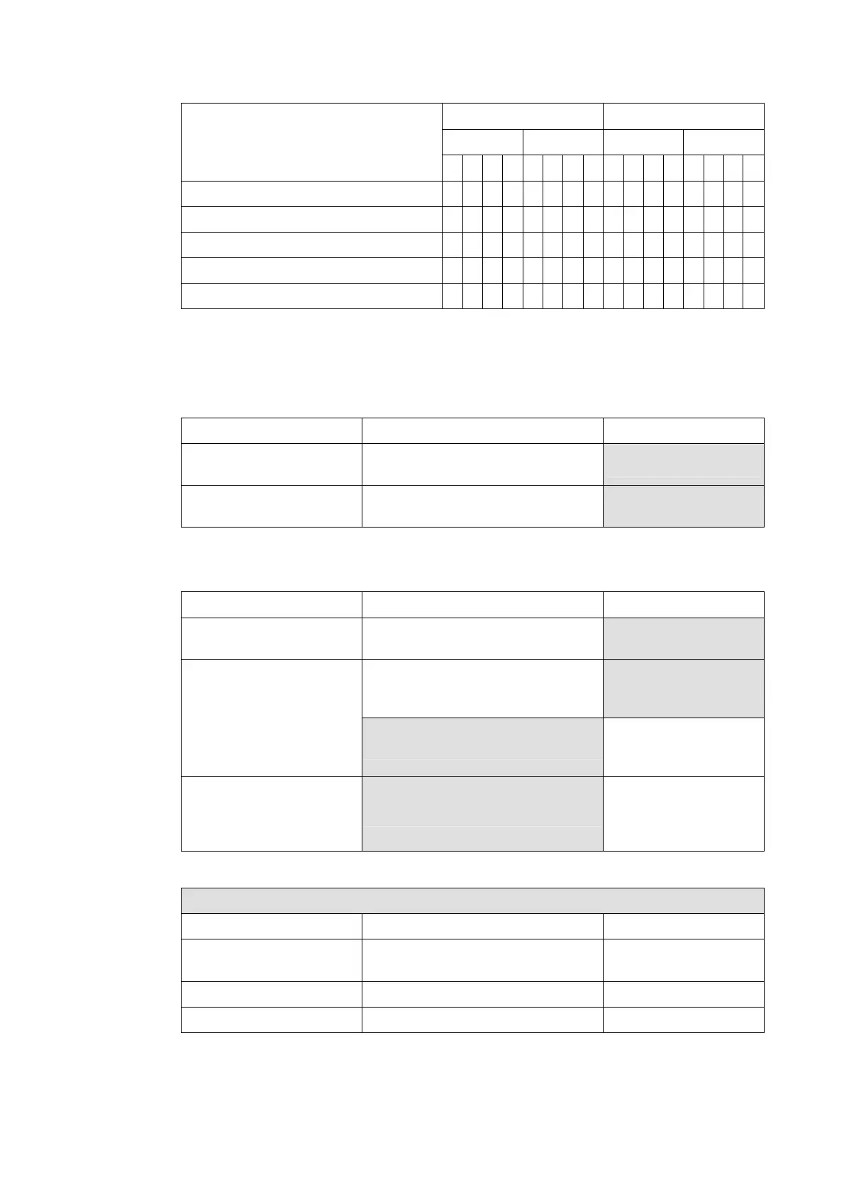 The following 3 tables indicate using Magneto card PLAR mode setting for communicaitons