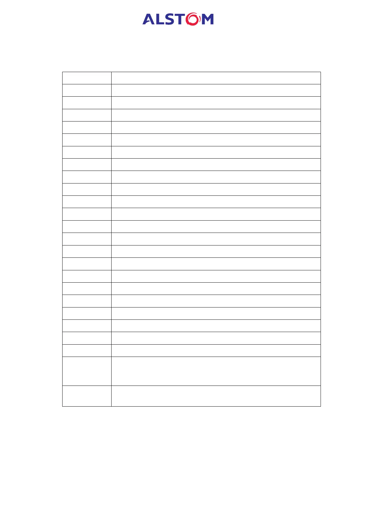 The list of all electrical alarms and their significance are indicated in the table below :