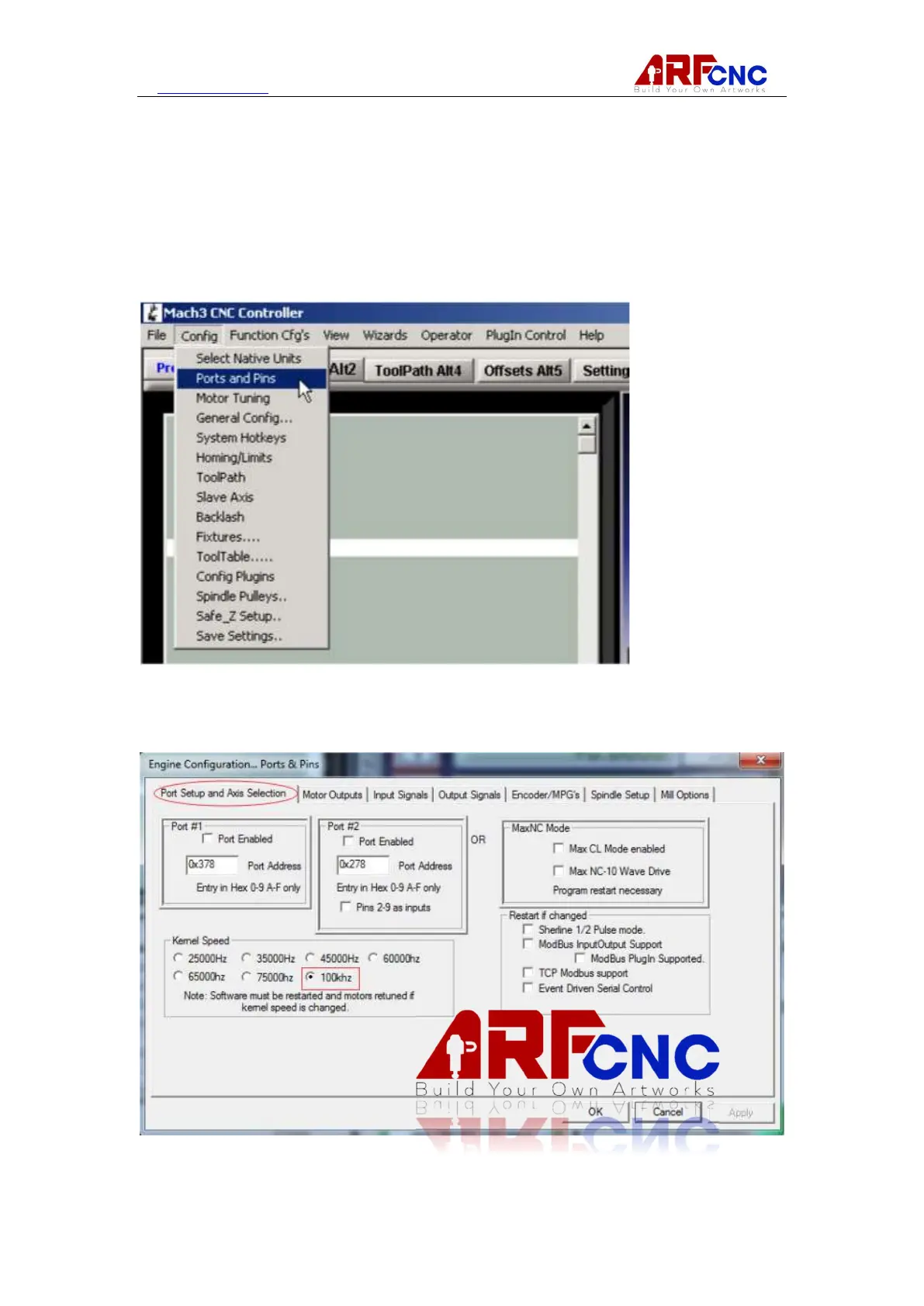 ARF CNC 6040 - Machine Settings; Port Setup and Axis Selection