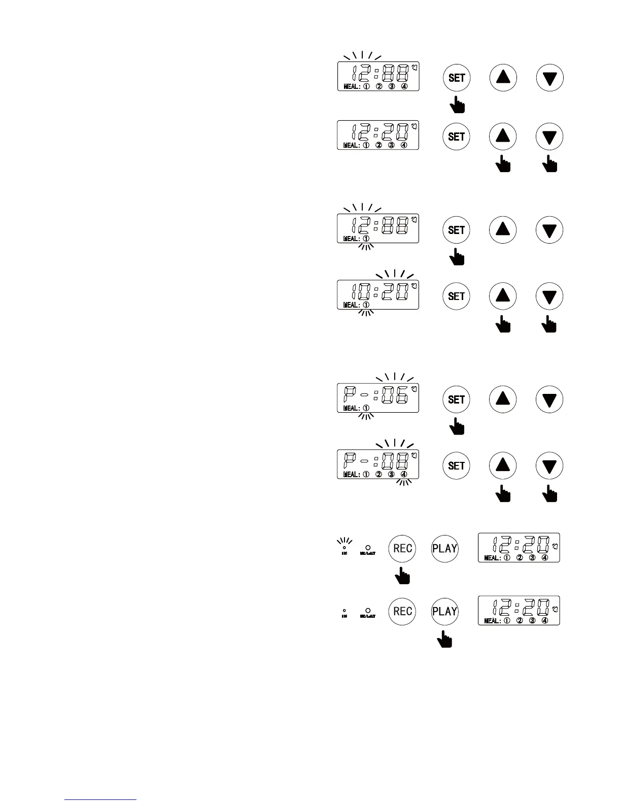 With no times or portions set and display lights on, press and hold the ▲ button to dispense one portion