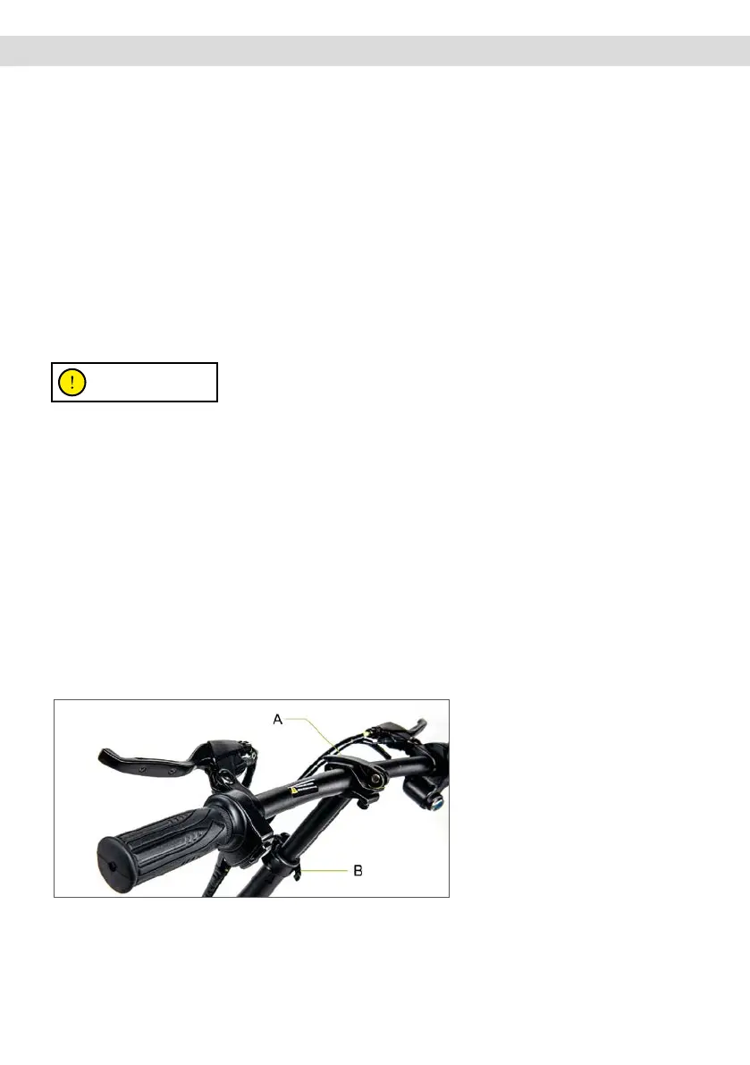 the handlebar (A) and turning the
