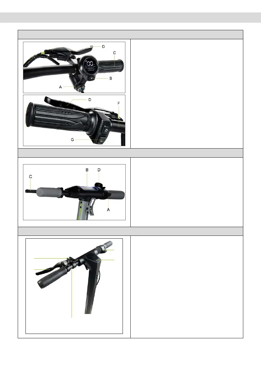 Palanca del freno (C): apretar la palanca para frenar