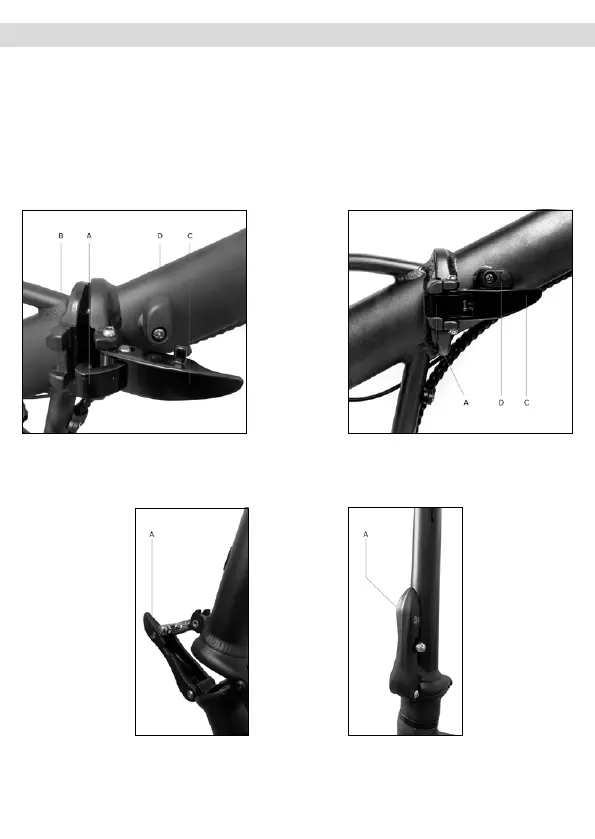 Pchnąć dźwignię (C) w kierunku przedniej części ramy i zabezpieczyć za pomocą odpowiedniego urządzenia blokującego (D).