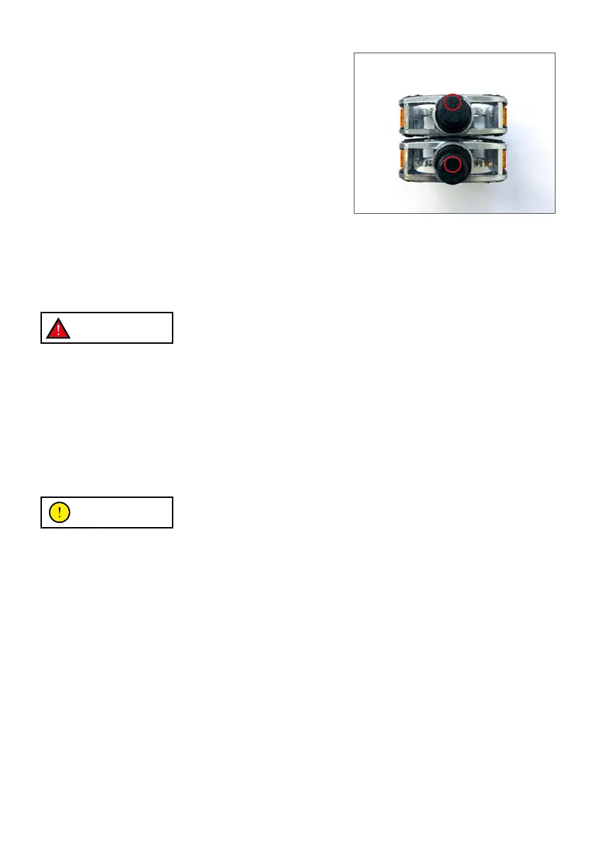 Nesprávně umístěné a/nebo volně utažené pedály mohou poškodit přední osu a/nebo