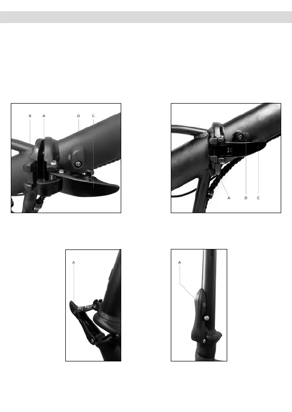 Pousser le levier (C) vers l'avant du cadre en assurant le serrage à travers le dispositif de blocage (D).