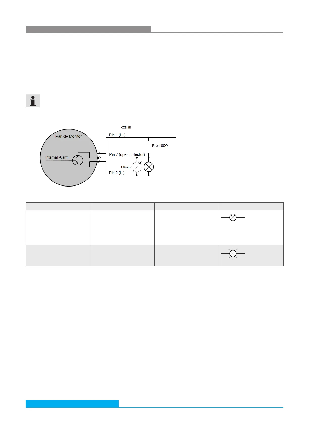 Depending on the state of alarm, pin 7 is on the ground (L-) or it is not connected (floating).