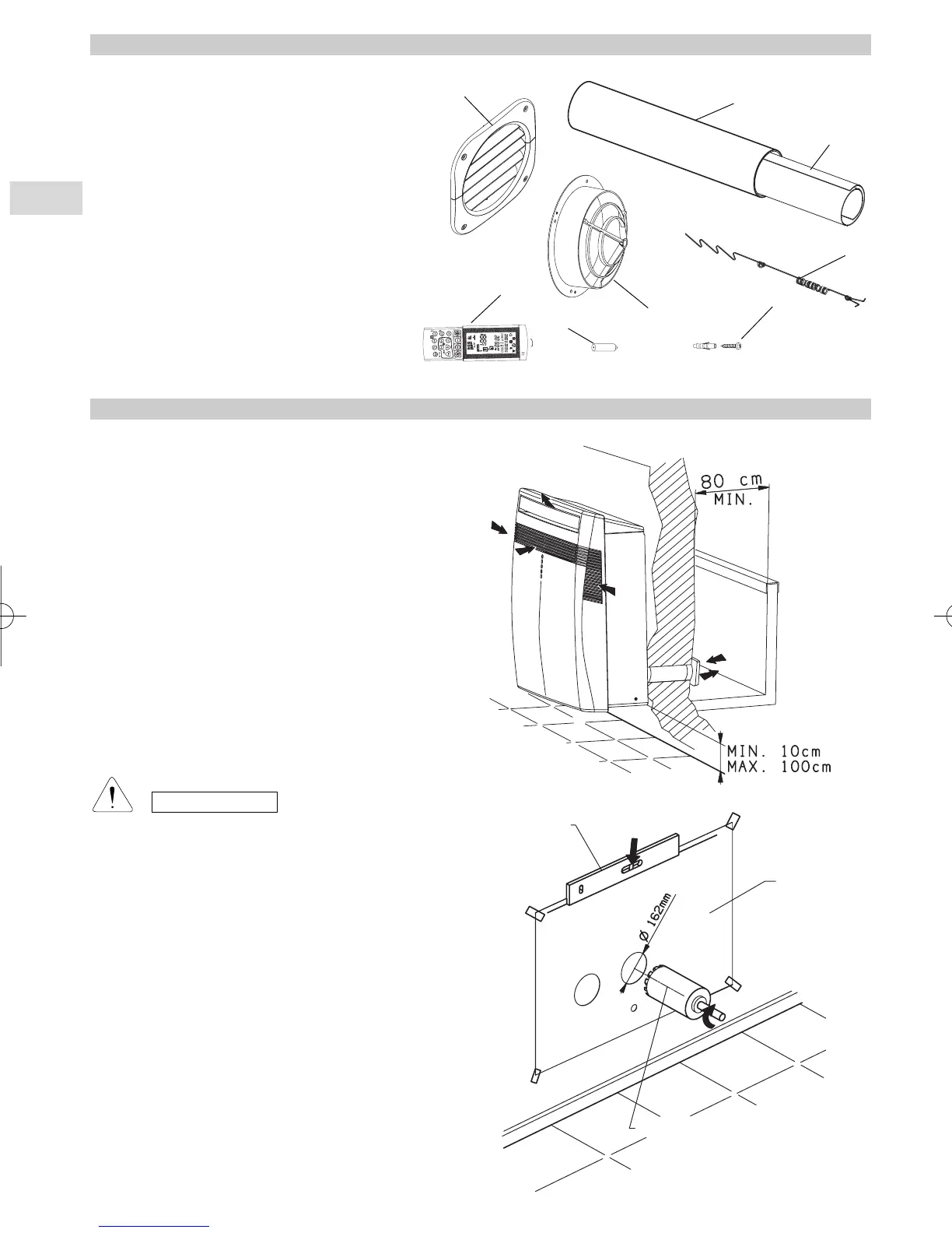 ● Fix the unit at a minimum height of 10 cm and a maximum
