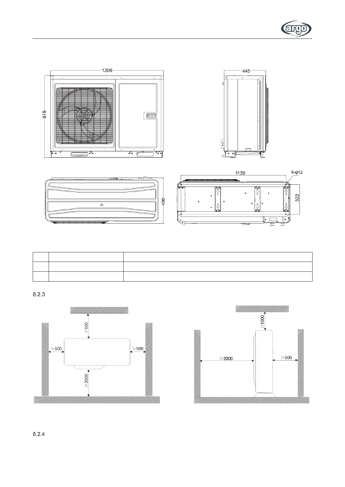 Space requirements for installation