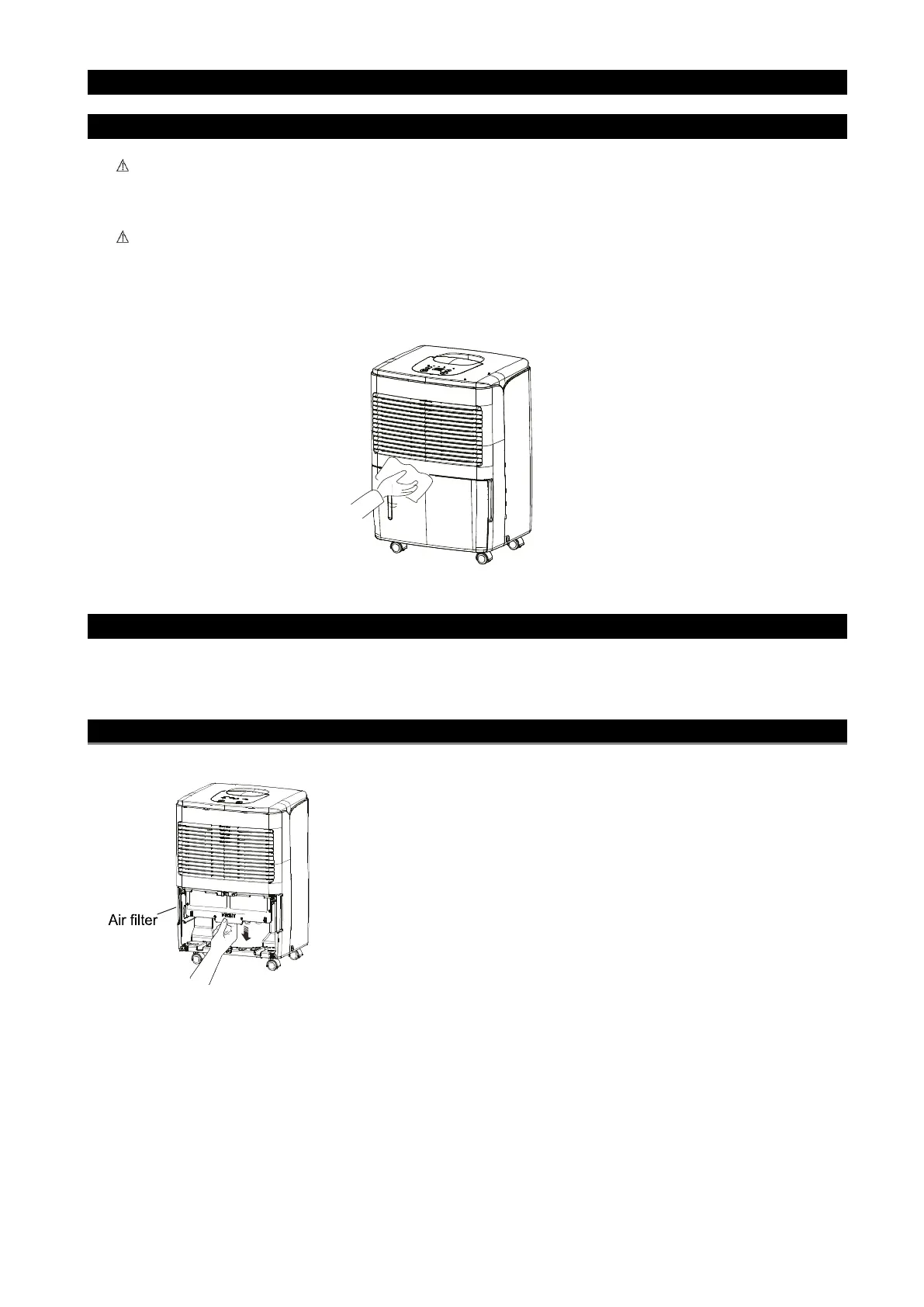 Do not use the dehumidifier without the filter as dust may affect the efficiency