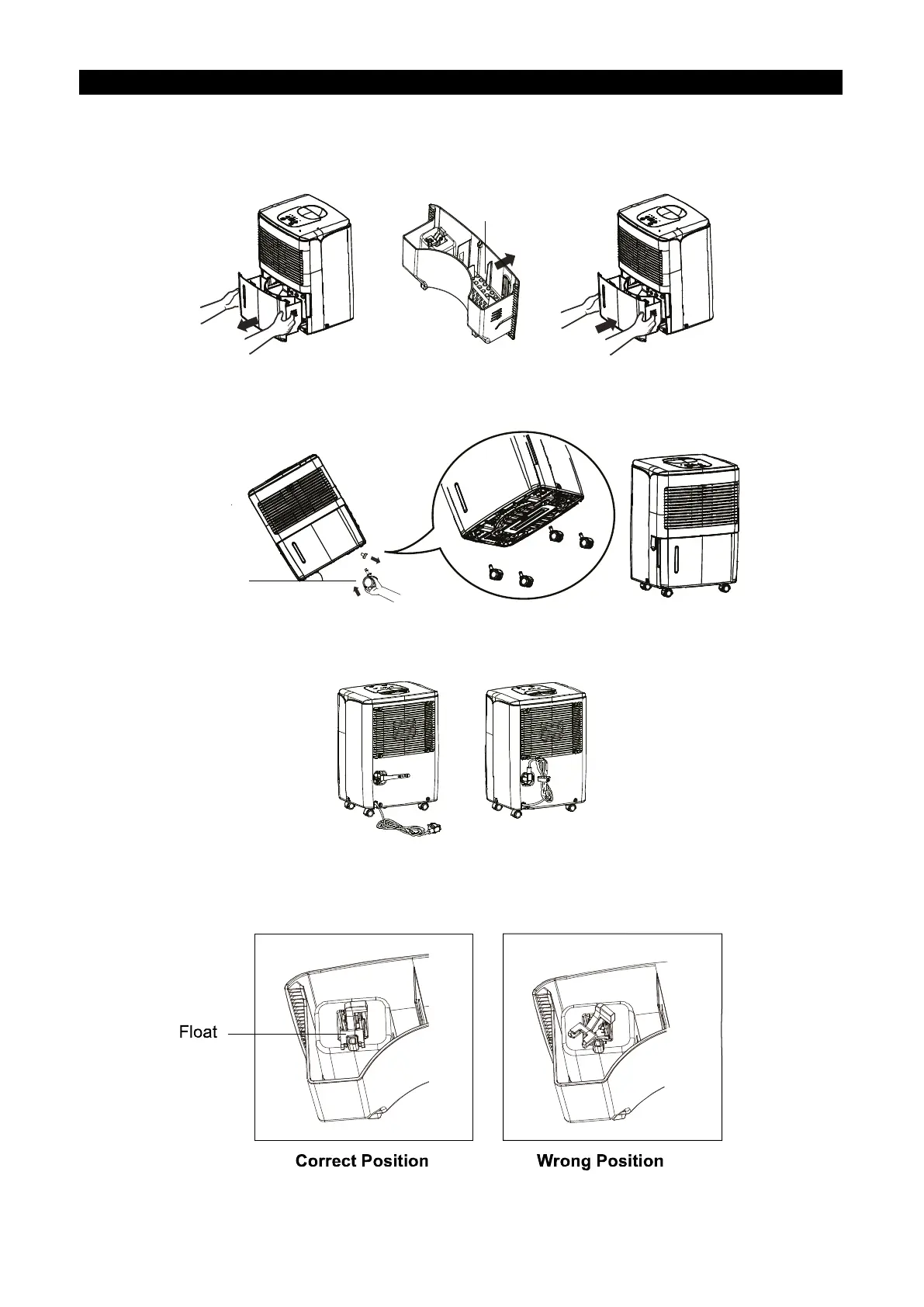 4. Tilt the dehumidifier no more than 45° and remove the 4 rubber plugs, which will be replaced by the 4 wheels.