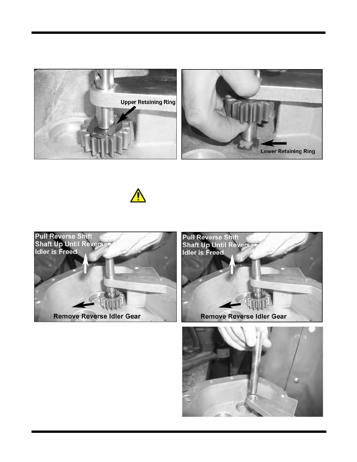 5. Raise the reverse idler up and remove the retaining clip found below.