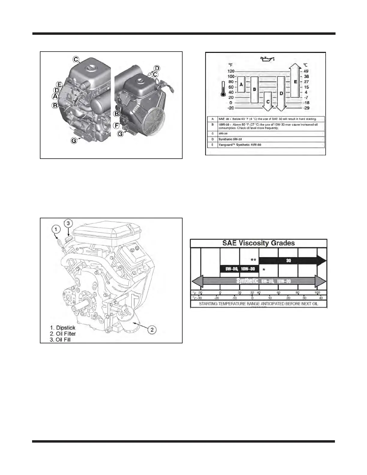 the correct viscosity of oil for seasonal driving conditions. See chart oil charts for each engine.