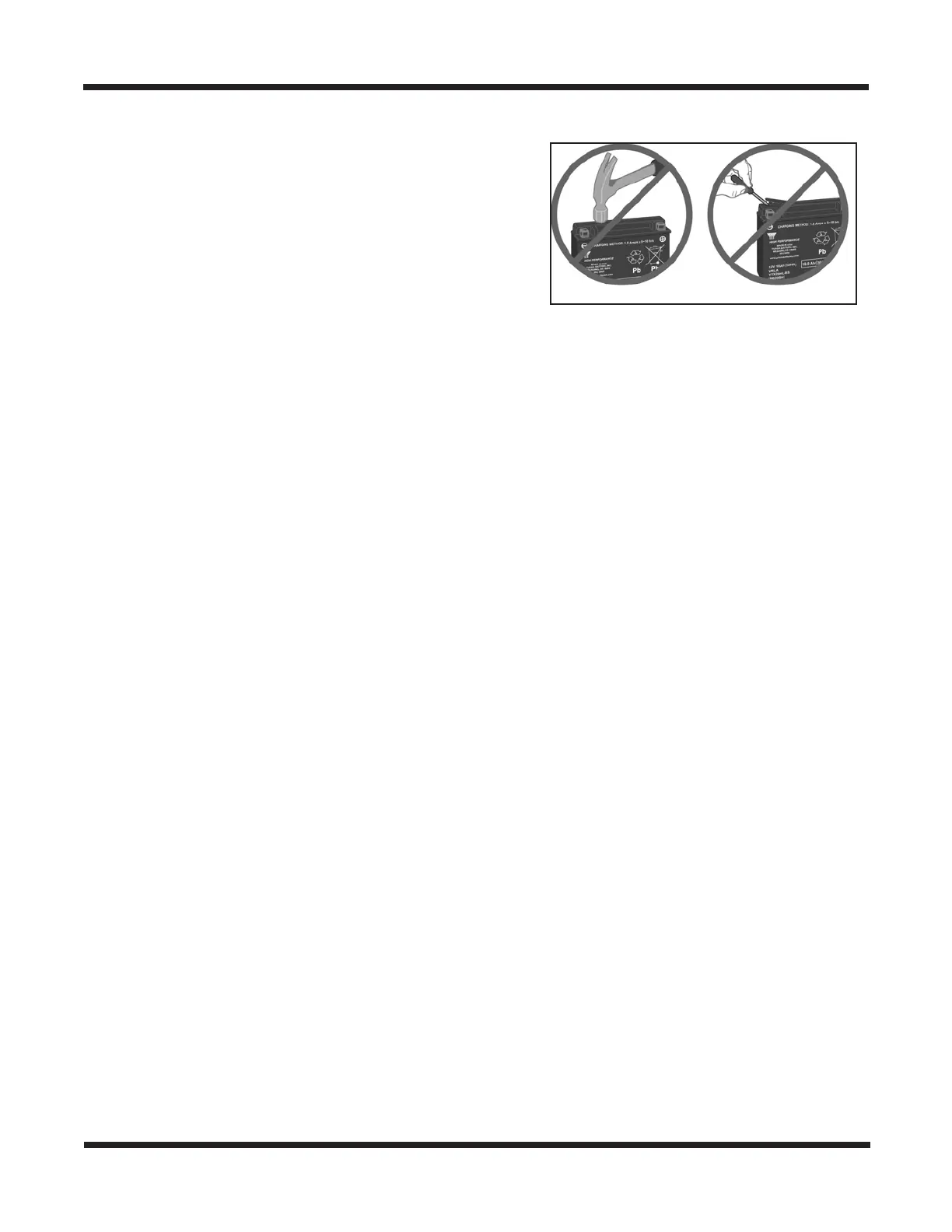 ■ High-rate, automotive types of chargers can cause damage to powersports