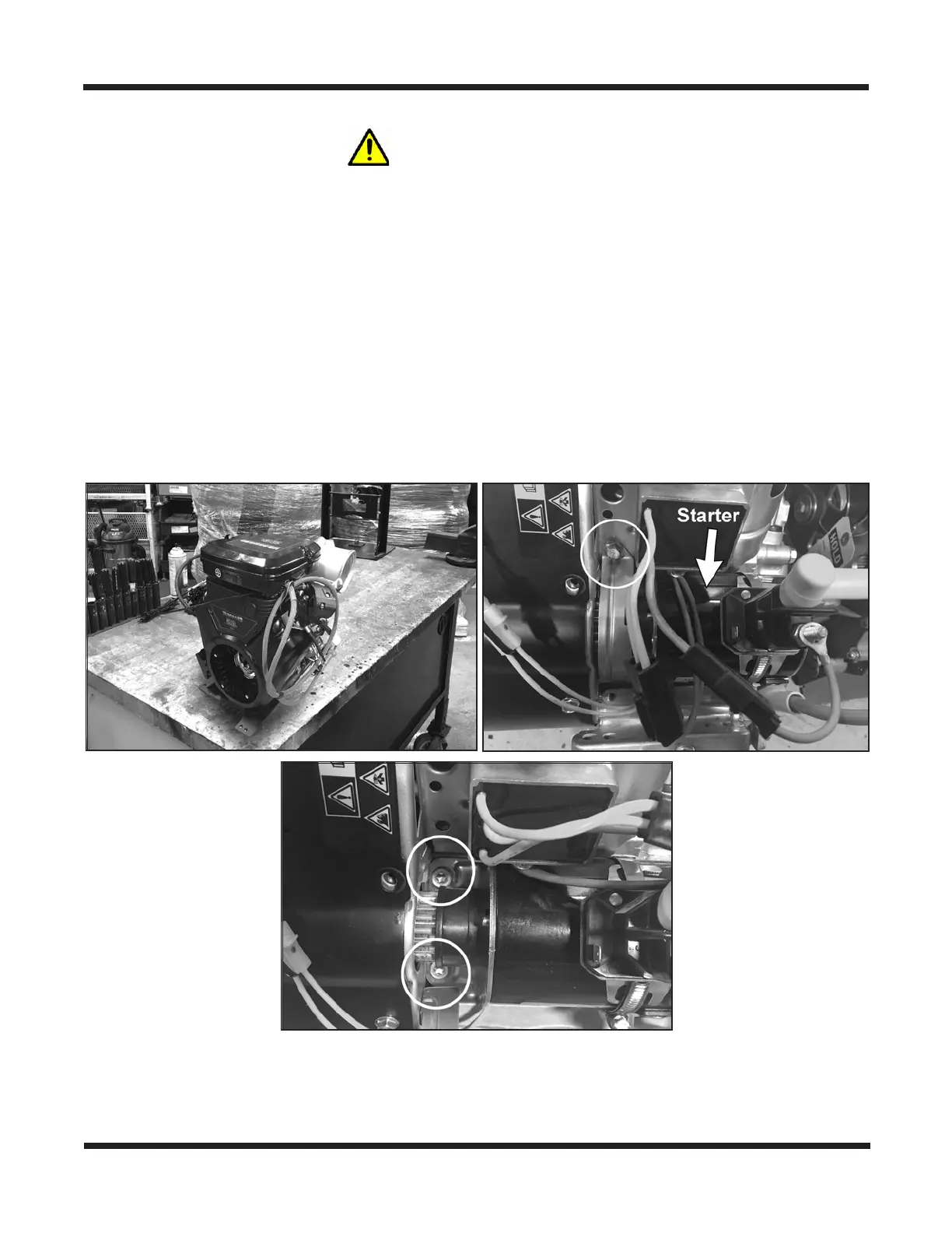 6. Install starter motor and torque bolts to 140 in. lbs. (16 Nm). Reinstall starter gear pin-