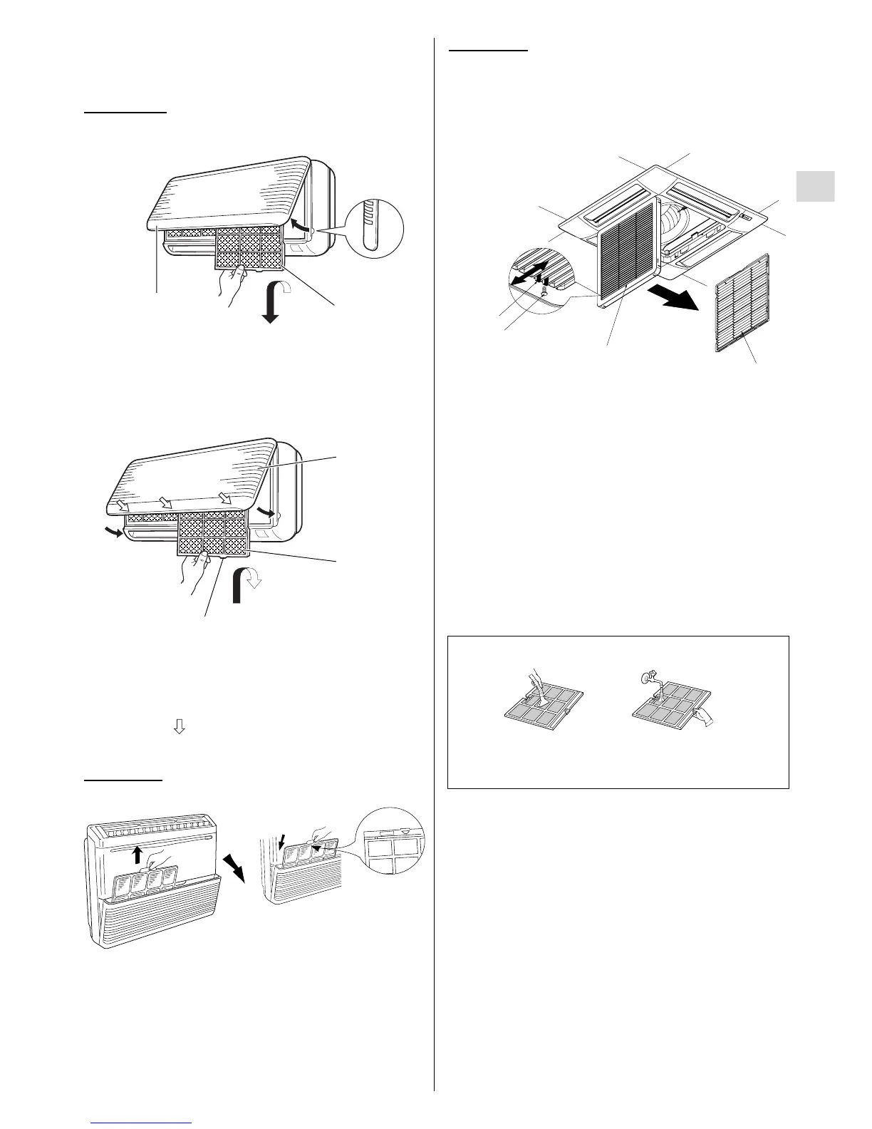 2. Push the filter up slightly, and then pull it down. Clean the