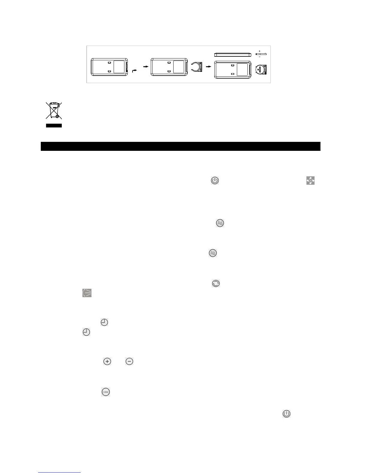 lights. Press this button once or more times to set the operation time (1-8 h).