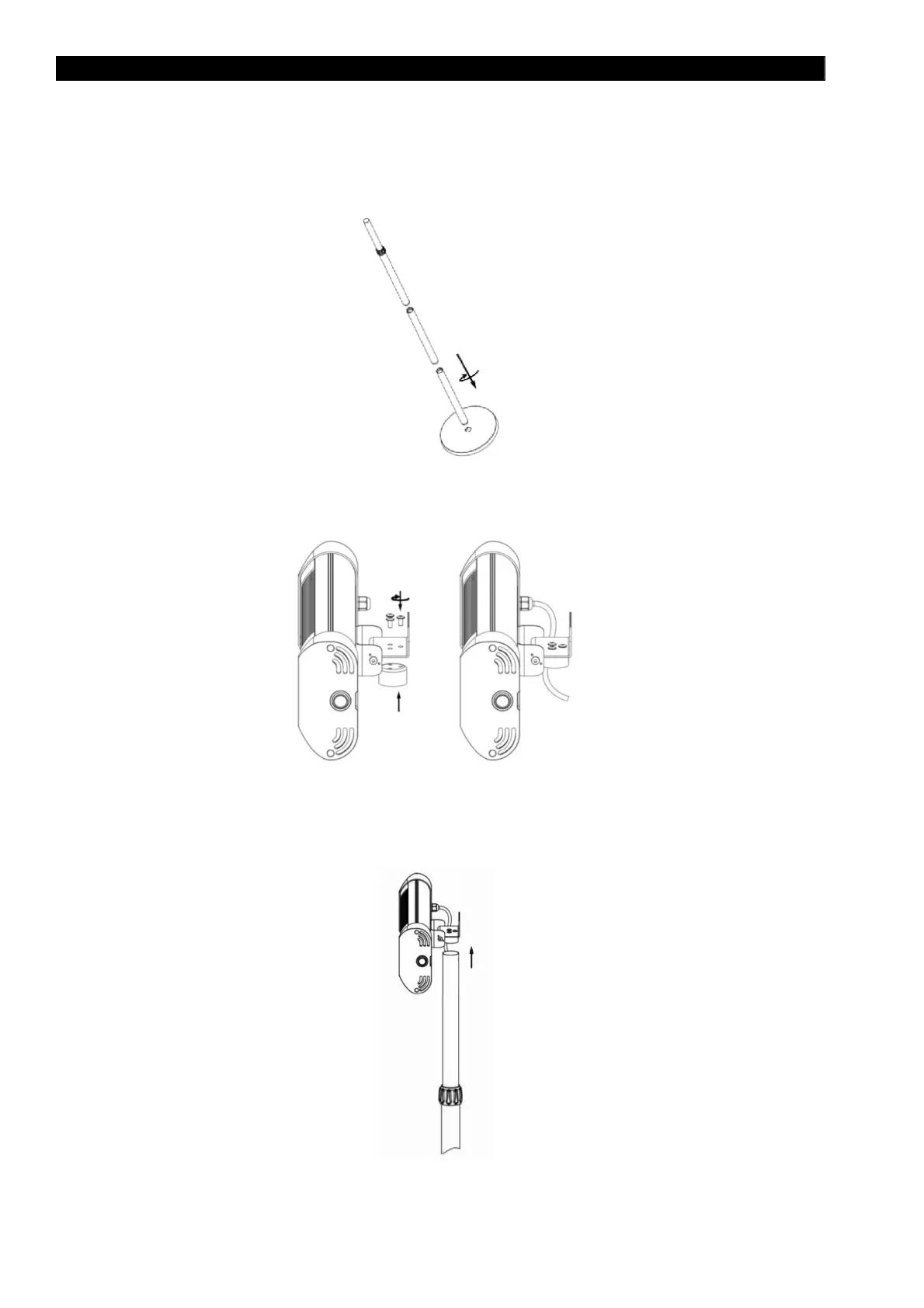 2) Line up the three holes in the plate with the three holes in the tube provided to join the lamp to the previously assembled