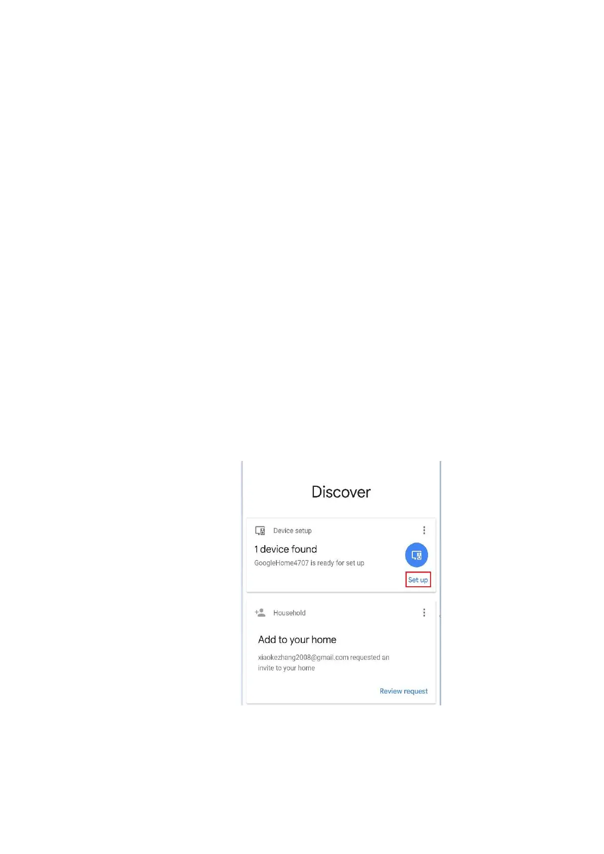 Click “Setup” to start connecting Google Home device.