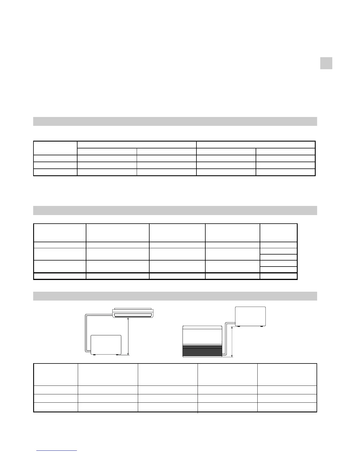 * For every meter of tube more than standard lenght at shipment, add refrigerant as shown in the table. No additional charge
