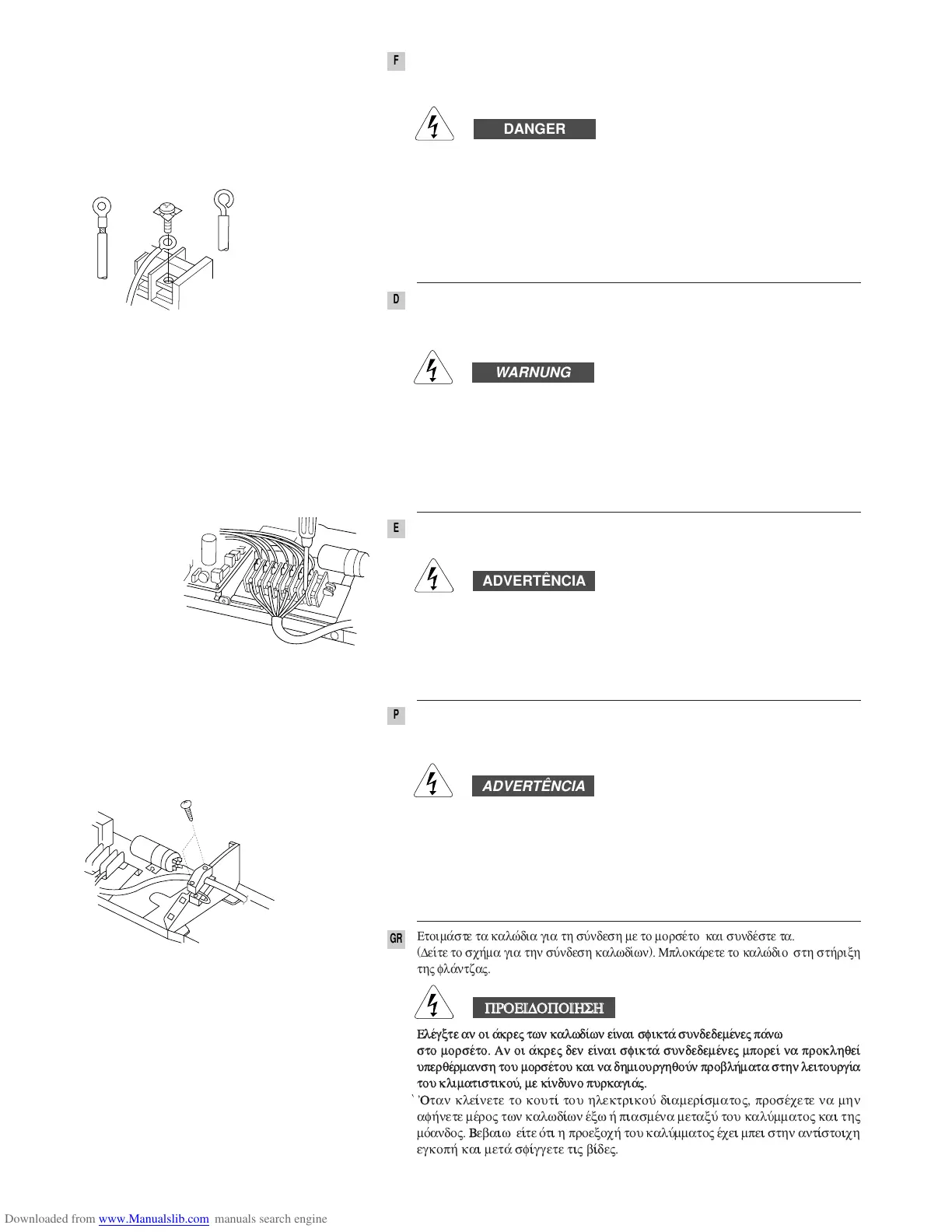 esquema elétrico para a ligação). Fixe o fio com uma anilha especial à