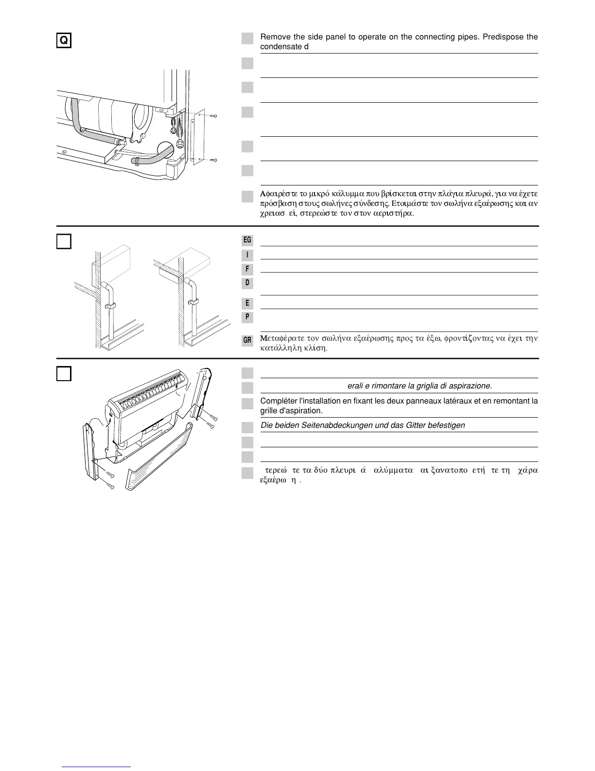 Rimuovere il pannellino laterale per accedere ai tubi di collegamento. Predisporre