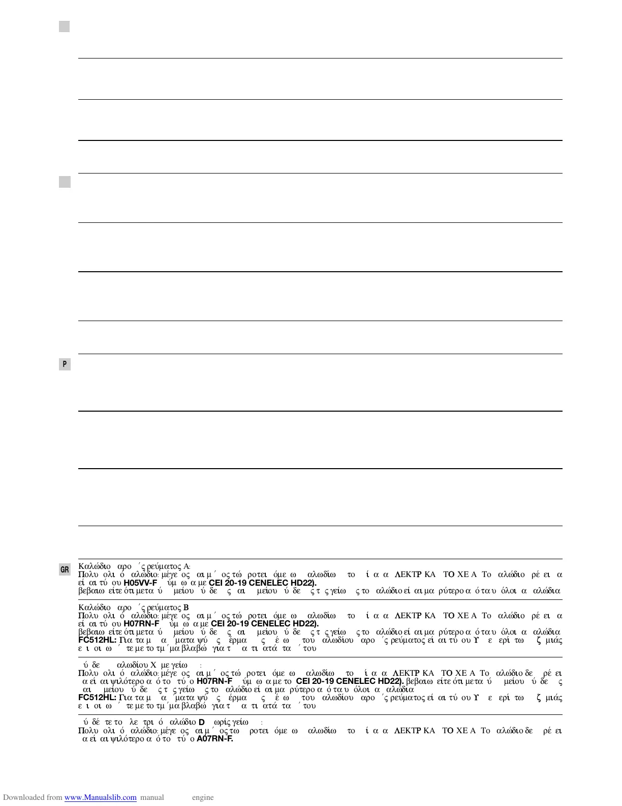Kabel soll nicht leichter als H07RN-F-Typ sein (gemäß CEI 20-19 CENELEC HD22). Versichern Sie sich, daß die aktive