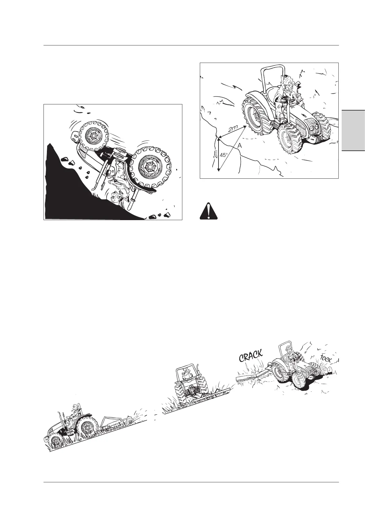 When operating near ditches and banks, always keep