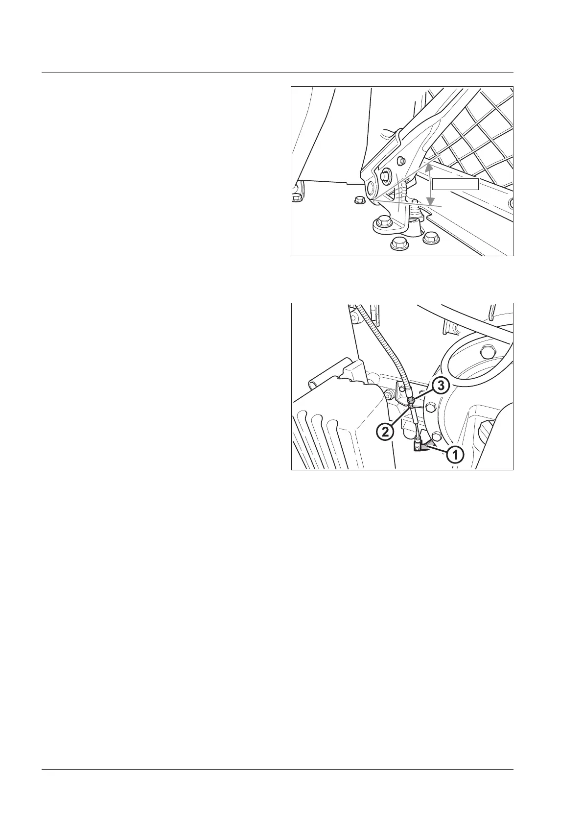 3. Loosen the check nut (2) and tighten the adjuster nut
