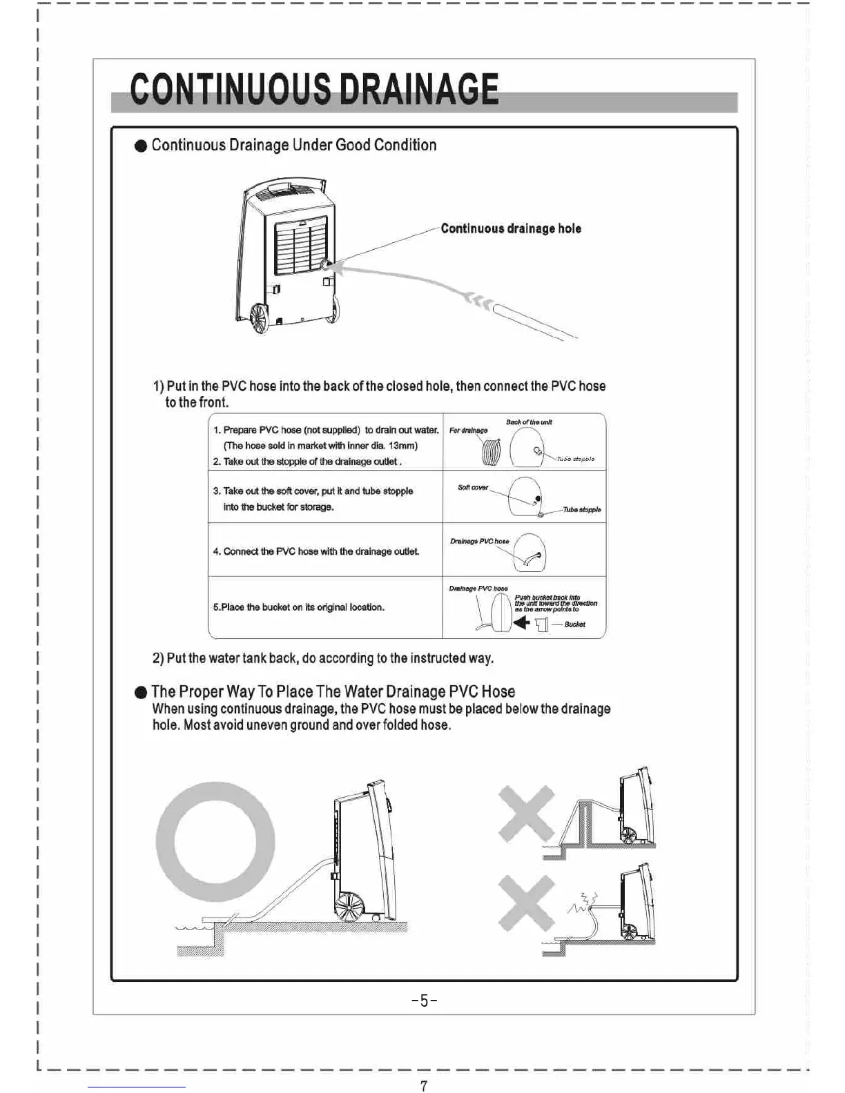 Argo NARCISO 12 - CONTINUOUS DRAINAGE; Continuous Drainage Under Good Condition; The Proper Way To Place The Water Drainage PVC Hose
