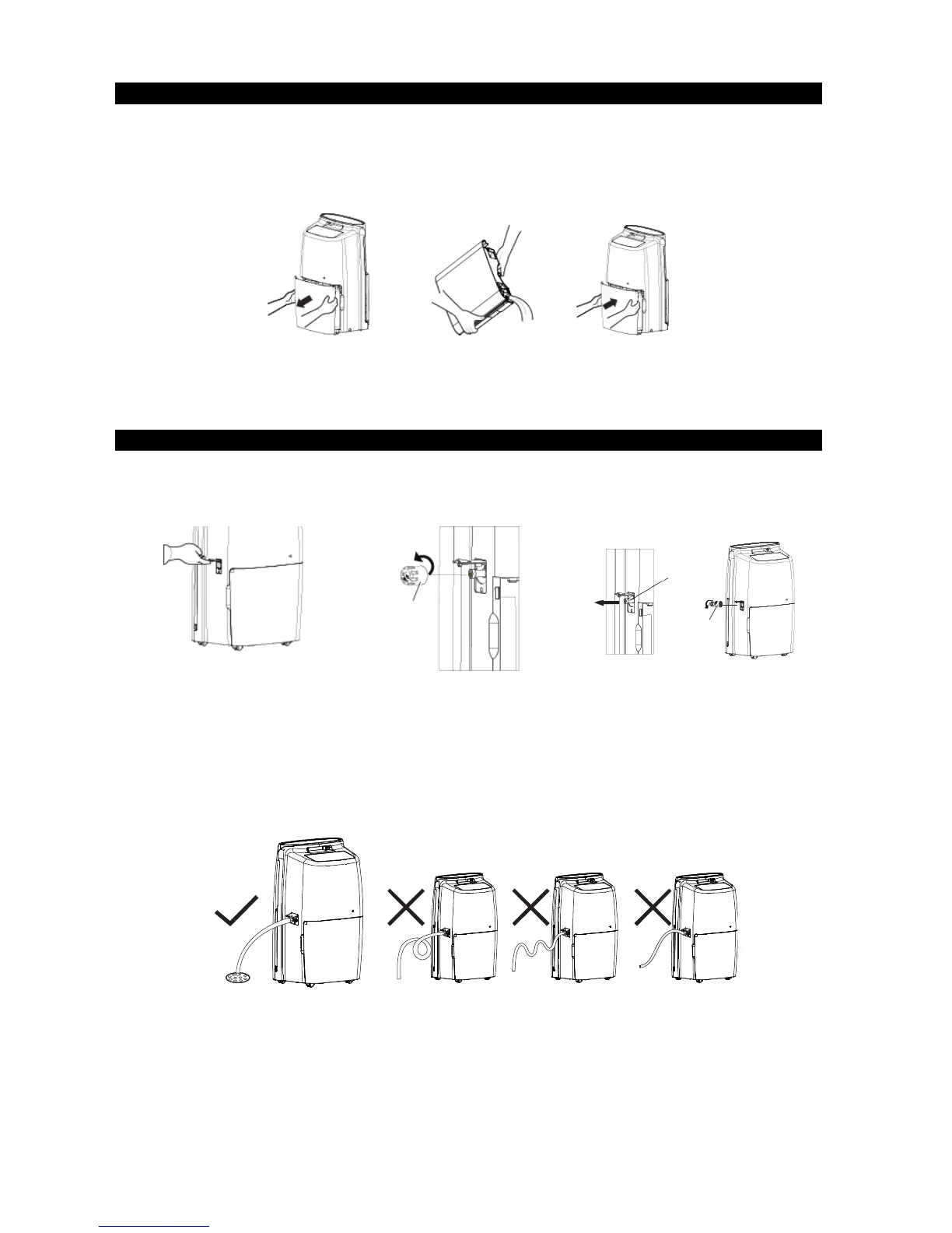 The height of the drainage hose must not exceed that of the hole: do not block the drainage hose exit.