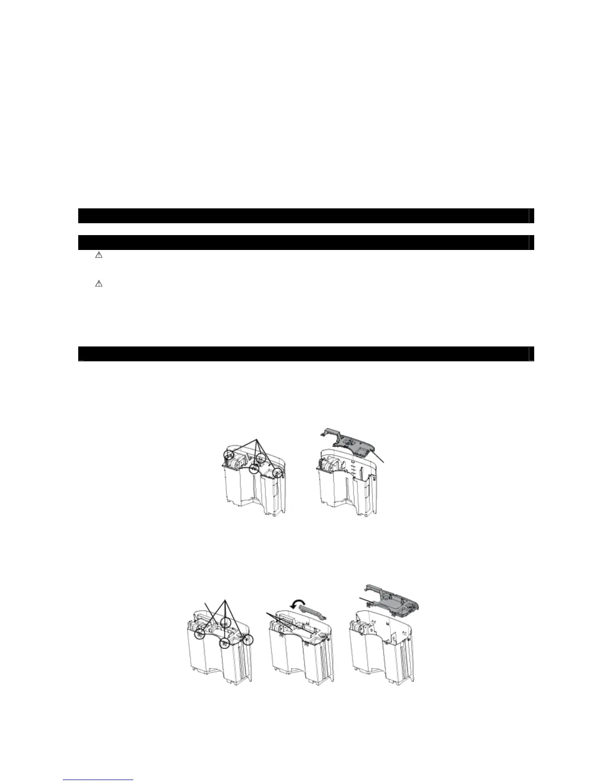 2. Press the 4 tabs around on top (1). Lift the cover (2)