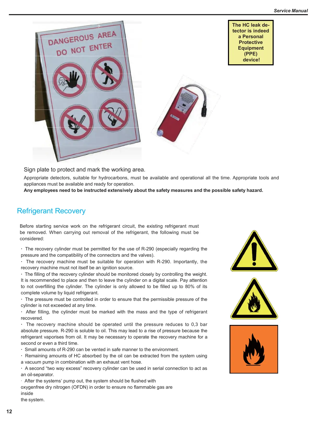 · Small amounts of R-290 can be vented in safe manner to the environment.