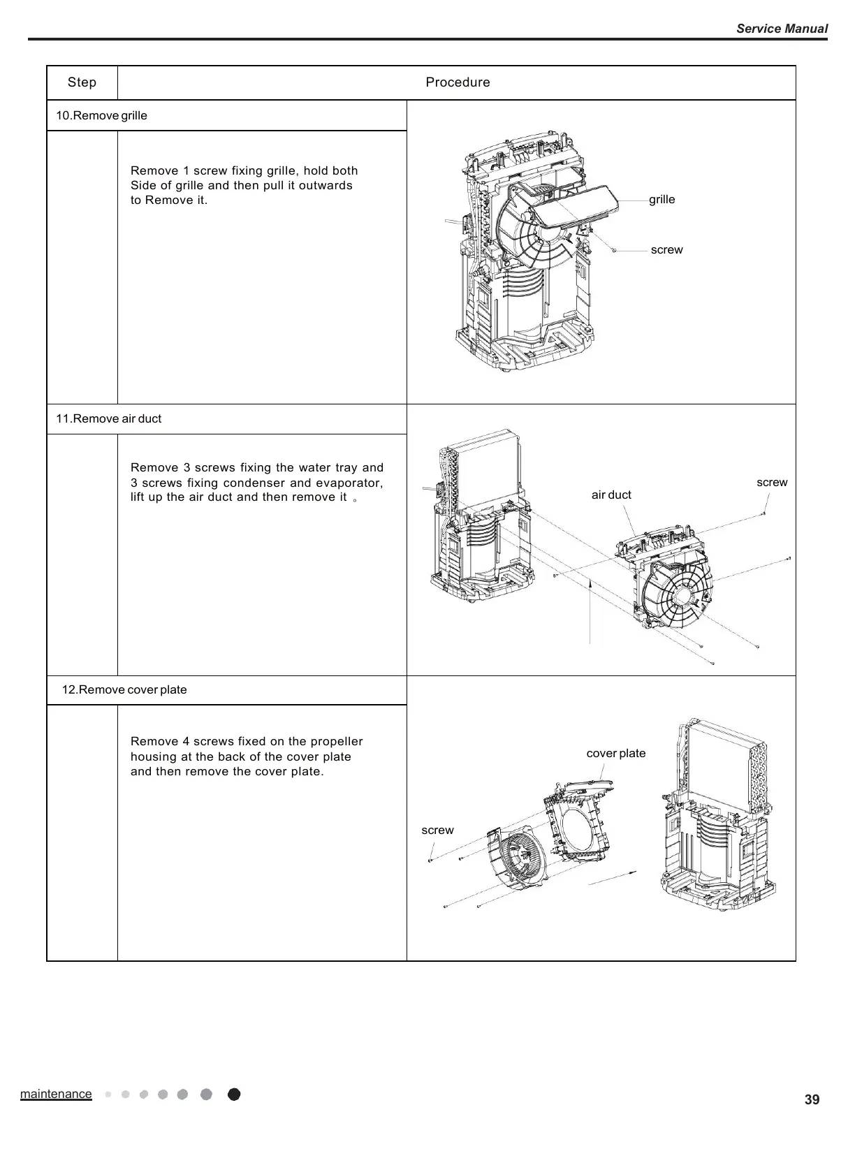 Remove 3 screws fixing the water tray and