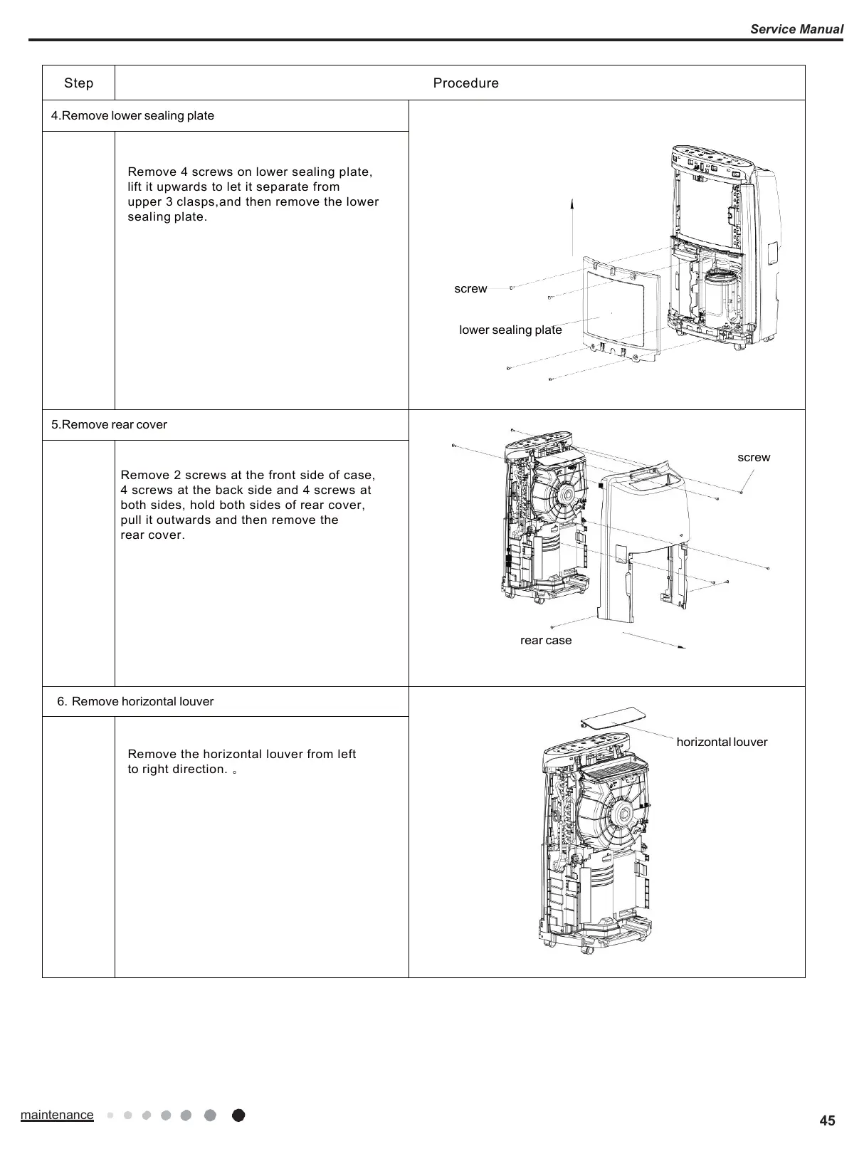 Remove 4 screws on lower sealing plate,